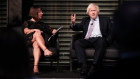 Boris Johnson speaks with Jennifer Hewett at The Australian Financial Review Business Person of the Year Awards on December 14, 2023.